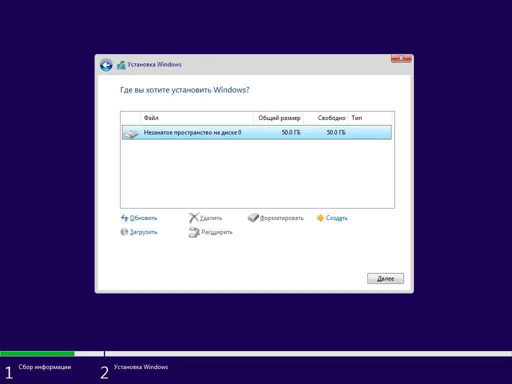 Во время установки система не запрашивает подключение к интернету и не предлагает создавать учётную запись Microsoft