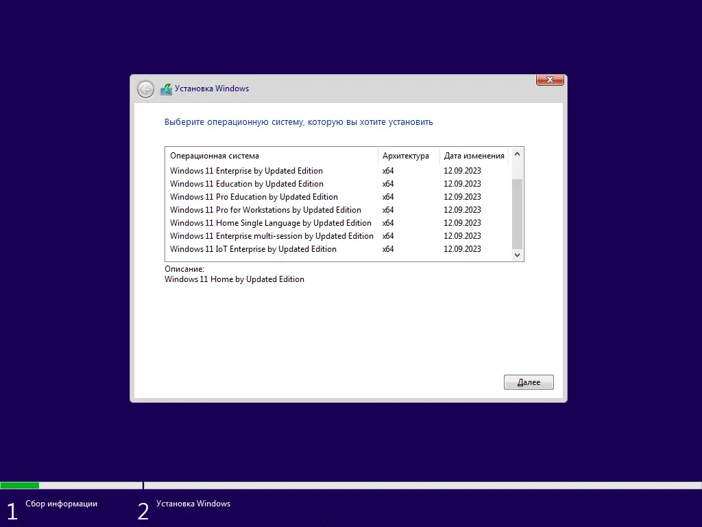 Сборка Windows 11 создана на базе оригинальных образов от Microsoft с использованием установщика от Windows 10 x64 (22H2). Процесс установки полностью автоматизирован — пользователю необходимо лишь выбрать редакцию и диск для инсталляции. Отсутствует требование подключения к интернету и привязки учётной записи Microsoft.