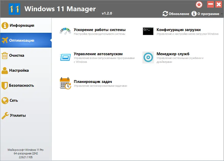 Windows 11 Manager представляет собой многофункциональный инструмент, разработанный специально для полного контроля над операционной системой. Утилита позволяет не только ускорить работу компьютера, но и глубоко настроить его поведение под индивидуальные потребности. С её помощью можно легко управлять автозагрузкой, реестром, службами, сетевыми параметрами и внешним видом интерфейса.