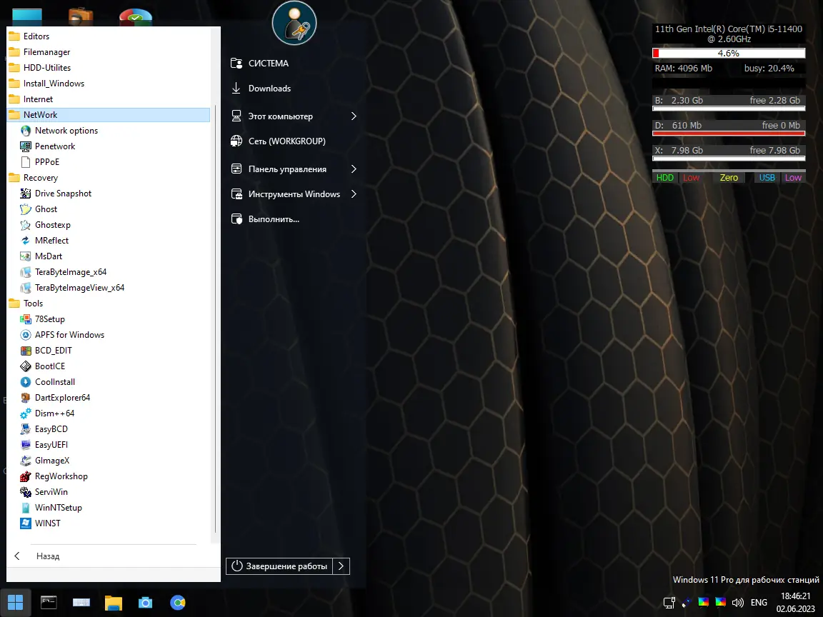 Загрузочный диск на базе Windows 11 PE x64 предназначен для комплексного обслуживания компьютера, диагностики оборудования, работы с жёсткими дисками, восстановления данных и резервного копирования. Система включает расширенный набор утилит и драйверов, оптимизированных для стабильной работы в автономном режиме. Поддержка современных интерфейсов и протоколов делает её универсальным инструментом в арсенале специалиста по ремонту и настройке техники.