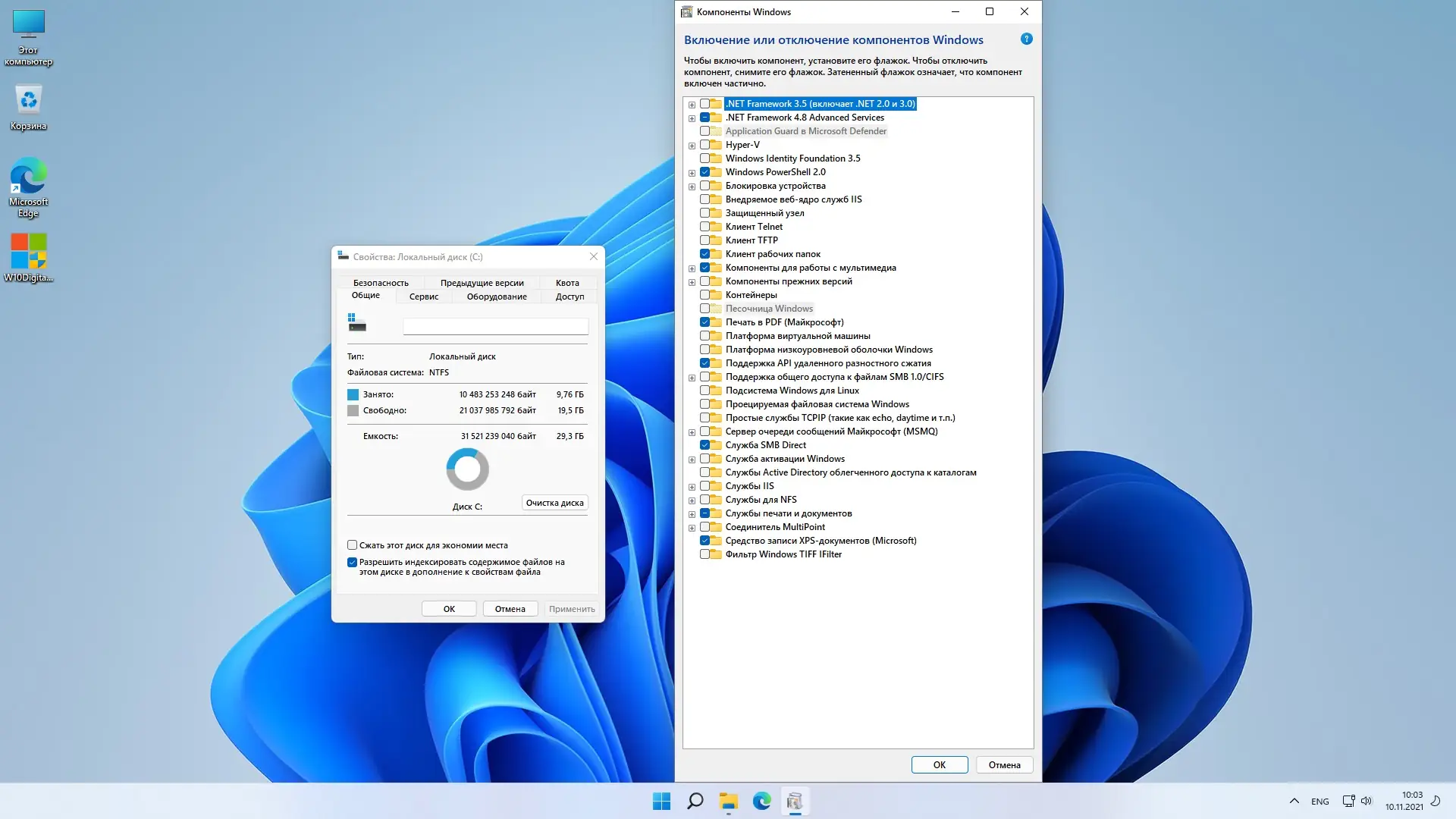 - Отключено зарезервированное хранилище, что освобождает дополнительное место на диске