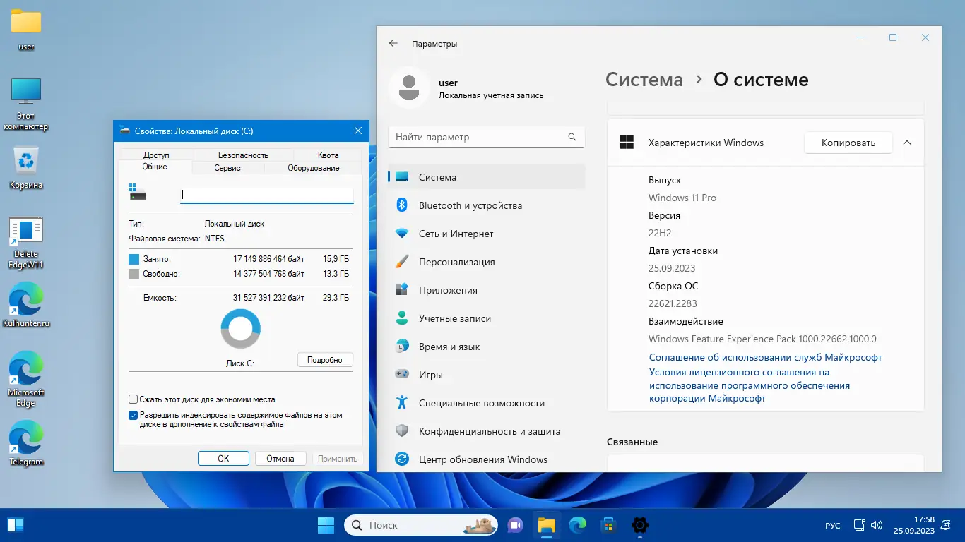После завершения установки система автоматически применяет встроенные настройки, направленные на улучшение производительности и удобства. Пользователь получает чистый интерфейс без рекламных элементов, с отключёнными рекомендациями и автозагрузкой нежелательных приложений. Проводник настроен на отображение полного пути, расширений файлов и скрытых системных папок. Управление производится через стандартные средства ОС, а контекстное меню очищено от лишних пунктов, что ускоряет навигацию. Для переключения раскладки предусмотрена комбинация правого Shift и правого Alt, заданная через реестр.