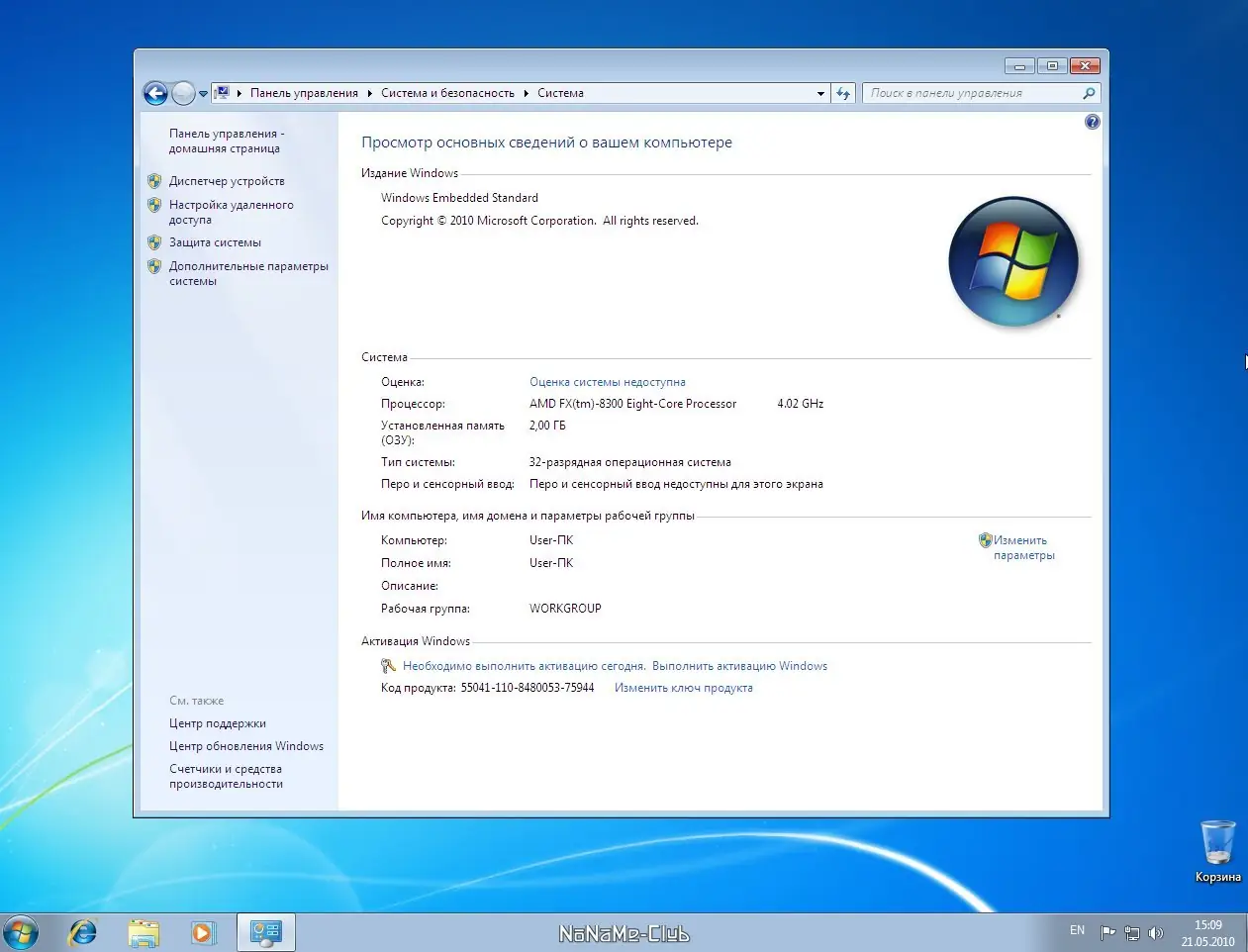 После установки система запускается в стандартном режиме с привычным интерфейсом Windows 7. Для продления срока активации можно использовать указанный ключ, а по истечении 180 дней — выполнить команду в командной строке с параметром -rearm. Процедура позволяет повторно активировать систему, продлевая её использование без необходимости в замене образа. Все действия выполняются вручную через командную строку с правами администратора.