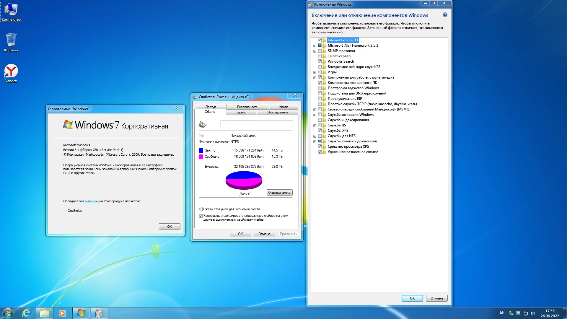 - Система поставляется с предустановленными полезными программами: 7-Zip для архивации и Яндекс-браузер для быстрого выхода в интернет.