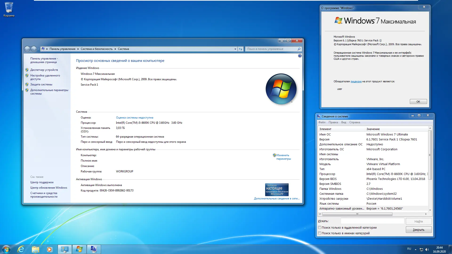 Сборка Windows 7 SP1 52in1 включает 13 русских и 13 английских редакций x86 и x64 с обновлениями по сентябрь 2020 года, интегрированными системными библиотеками, возможностью установки Microsoft Office 2019 и встроенным набором инструментов восстановления. Поддержка NVMe, USB 3.0, автоактивация и расширенный выбор опций делают установку простой и гибкой. Совместима с современным оборудованием, включая процессоры Intel Kaby Lake и AMD Ryzen.