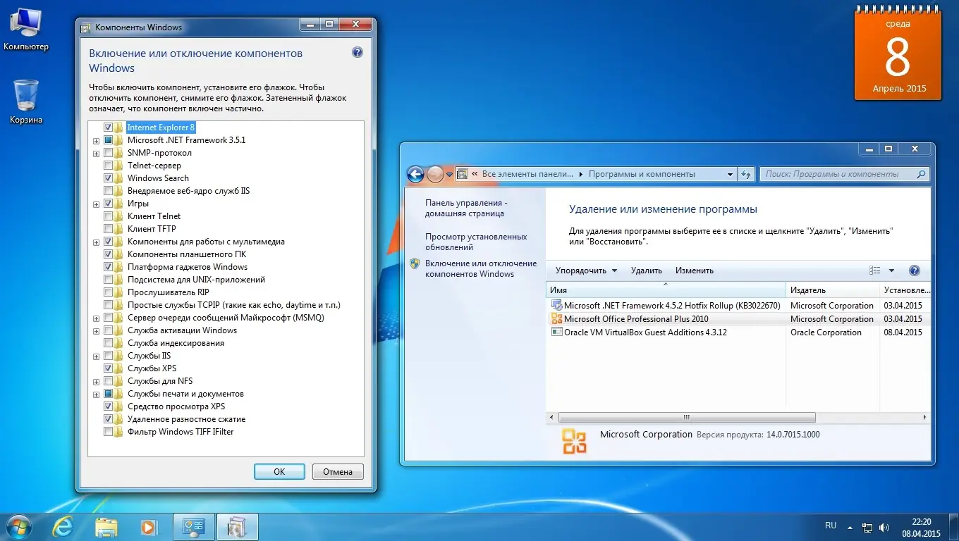 - Присутствует .NET Framework 4.5.2 с накопительным обновлением, необходимым для запуска большинства современных приложений.