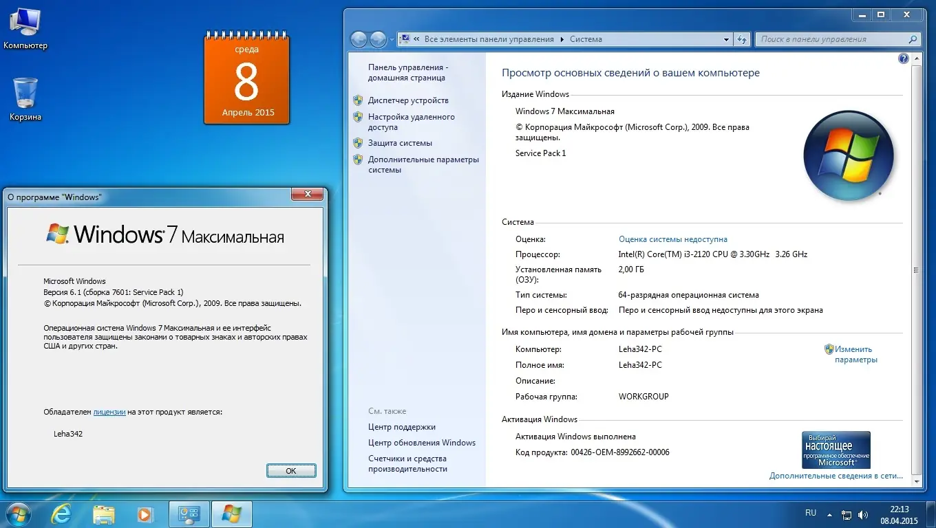 Описание Windows 7 Ultimate SP1 +Office2010 SP2 ESD April