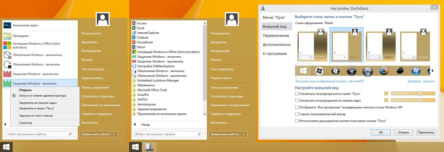 - Восстановлено меню «Пуск» в стиле Windows 7 с помощью StartIsBack++