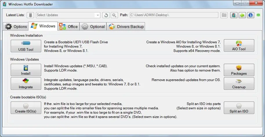 Небольшая бесплатная утилита для автоматической загрузки обновлений Windows 7, 8, 8.1, Office 2013 и Microsoft Runtimes, поддерживающая 32- и 64-битные версии систем. Программа удобна при создании интегрированных сборок операционных систем и офлайн-установке пакетов обновлений.