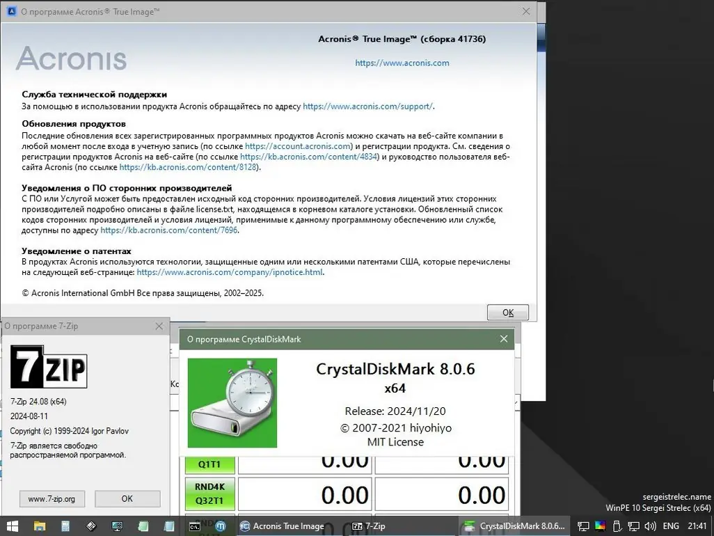 Загрузочный диск на базе Windows 10 и 11 PE — универсальное решение для диагностики, обслуживания и восстановления компьютеров. Среда WinPE позволяет работать с жёсткими дисками, создавать резервные копии, восстанавливать данные, устанавливать операционные системы и выполнять антивирусную профилактику. Сборка включает широкий набор утилит для работы в автономной среде, поддерживает UEFI и Legacy, а также обладает расширенными возможностями для удалённого доступа и настройки системы.