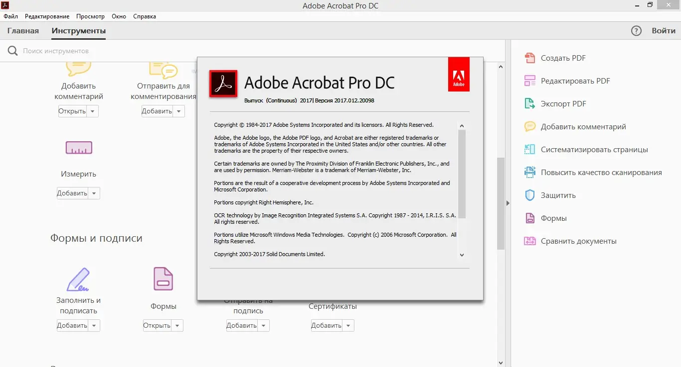 Adobe Acrobat Pro DC 2017.012.20098 RePack by KpoJIuK (2016) Multi / Русский + ключ активации 2026 на русском языке