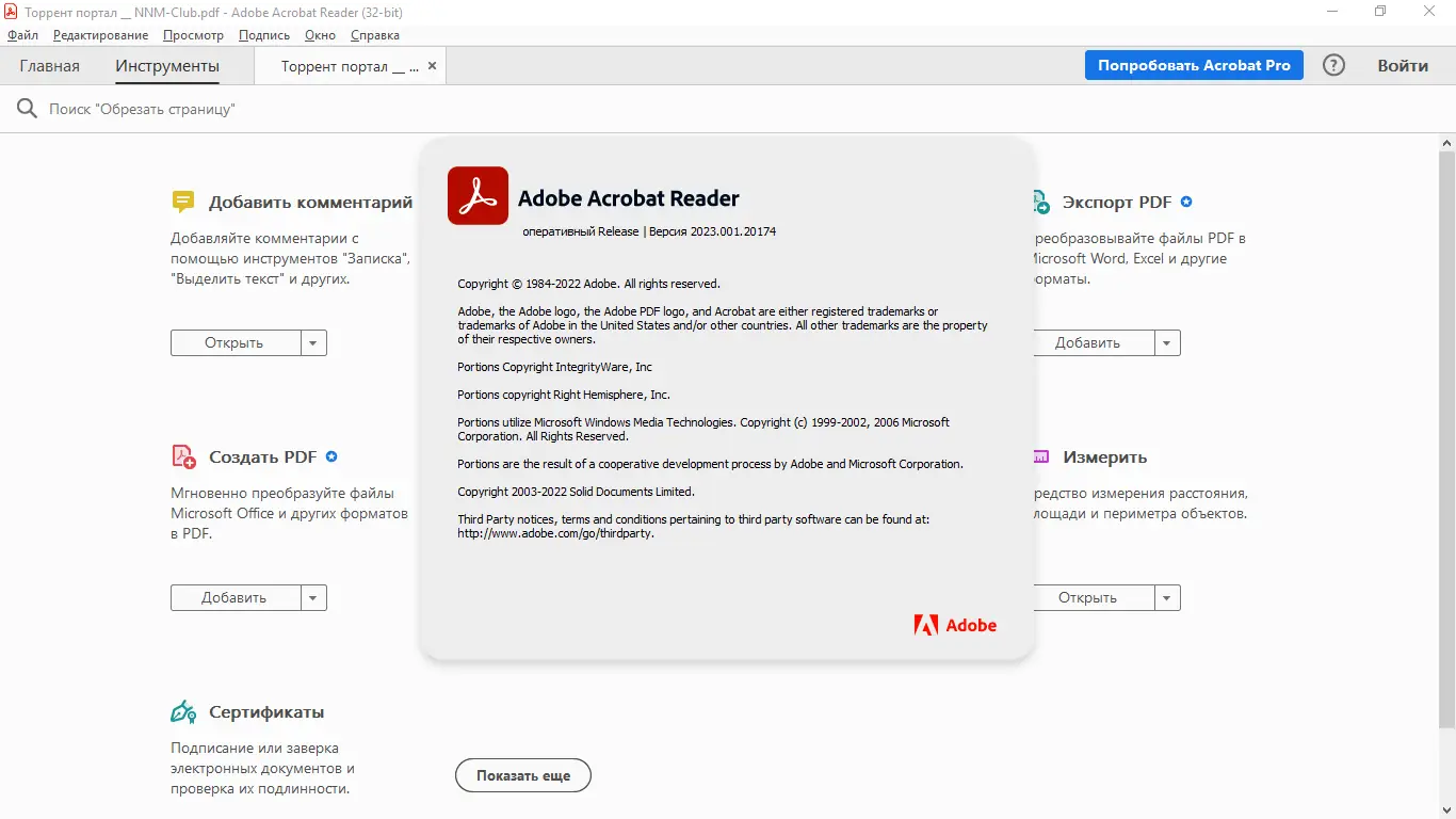 Adobe Acrobat Reader — это надежное программное обеспечение, разработанное для эффективной работы с PDF-файлами. Приложение позволяет не только открывать и читать документы, но и вносить в них изменения при наличии соответствующей подписки. Благодаря поддержке множества функций, включая добавление комментариев, выделение текста, заполнение форм и электронную подпись, программа подходит как для личного, так и для профессионального использования. Более 635 миллионов человек по всему миру уже используют этот инструмент для повседневной работы с документами.
