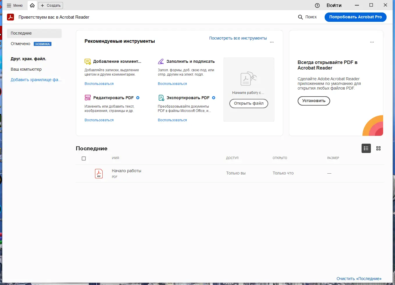Adobe Acrobat Reader — это надежное приложение для открытия, просмотра и взаимодействия с документами в формате PDF. Программа обеспечивает стабильную работу с файлами, независимо от их сложности и объема. Благодаря интеграции с облачными сервисами, пользователи могут легко синхронизировать документы между устройствами и продолжать работу с любого компьютера или мобильного гаджета.