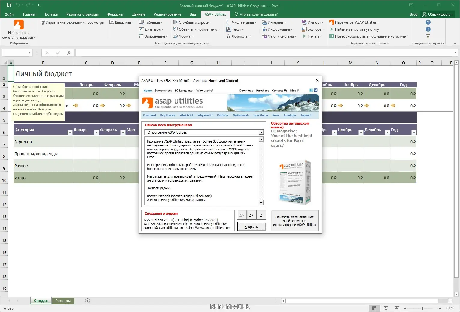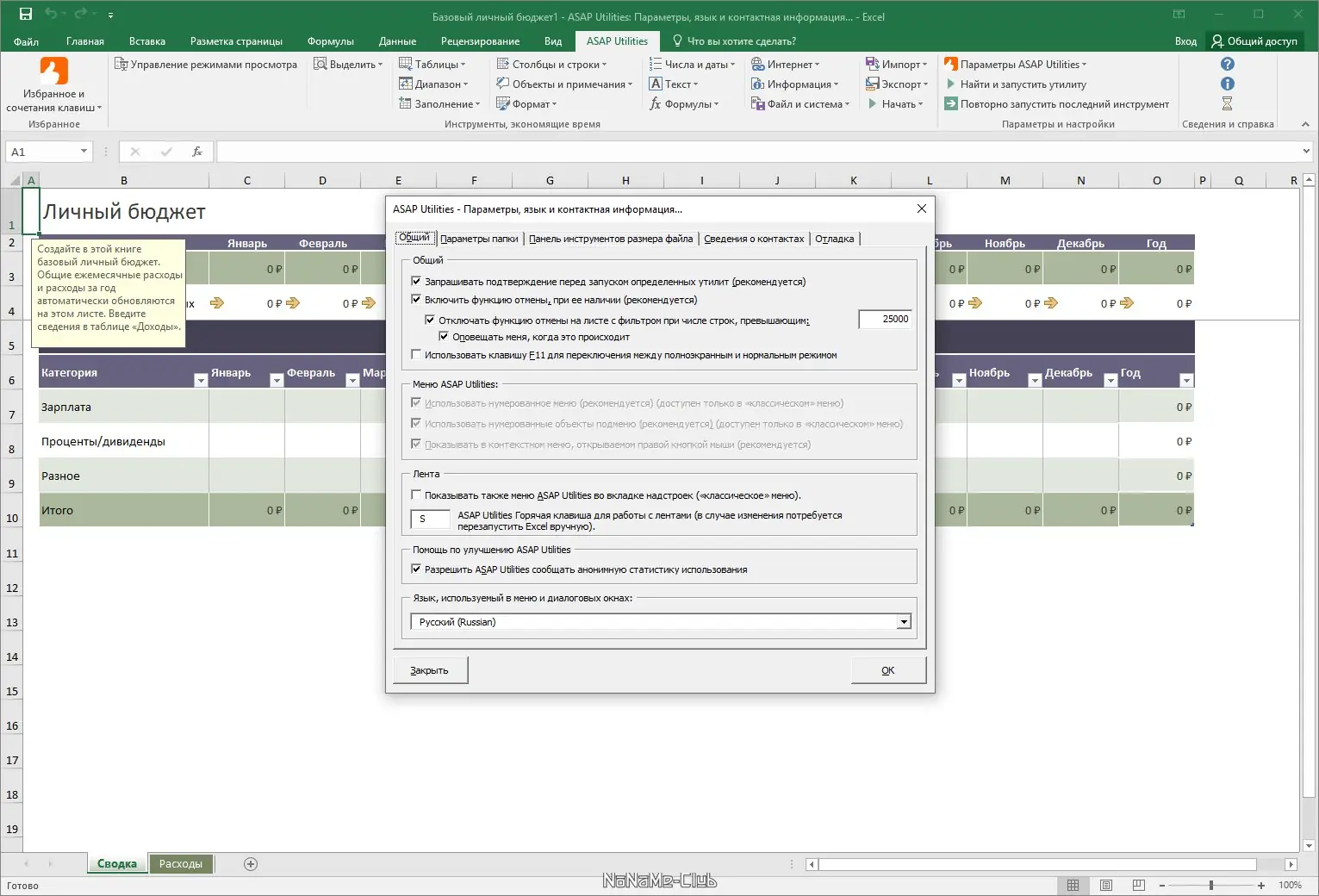 Описание ASAP Utilities for Excel
