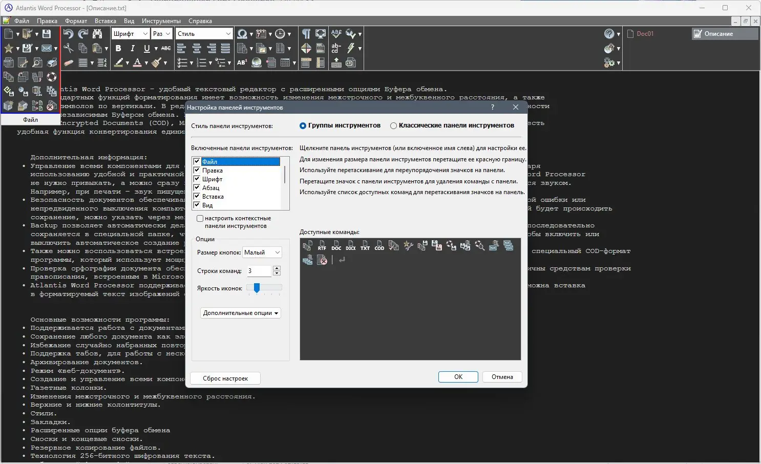 Atlantis Word Processor — это мощный и гибкий текстовый редактор, разработанный для эффективной работы с документами различных форматов. Программа сочетает в себе богатый функционал, интуитивный интерфейс и высокую степень настраиваемости, обеспечивая комфорт при создании, редактировании и хранении текстов. Поддержка популярных форматов, включая DOC и DOCX, а также встроенные инструменты шифрования и резервного копирования делают её надёжным решением для повседневного использования.