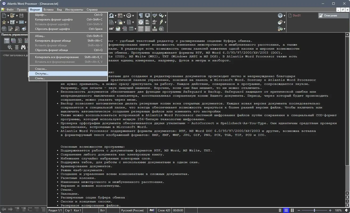 Atlantis Word Processor сочетает в себе лёгкость, надёжность и продуманную архитектуру, что делает его подходящим как для повседневной работы, так и для сложных проектов.