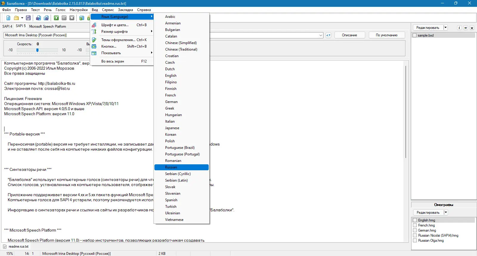 Как пользоваться Balabolka