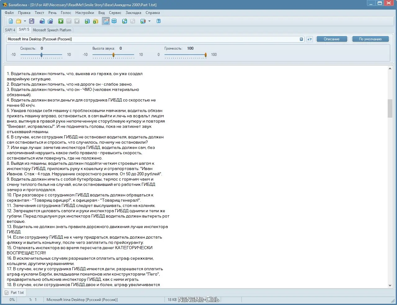 Balabolka — это мощная читалка с функцией синтеза речи, разработанная для пользователей, которым необходимо слушать тексты вместо чтения. Программа поддерживает широкий спектр форматов, включая DOCX, PDF, EPUB, FB2, HTML и многие другие, обеспечивая корректное отображение и обработку контента. Для преобразования текста в речь применяются голосовые движки Microsoft Speech API, которые могут быть дополнены сторонними голосами, в том числе с поддержкой русского языка.
