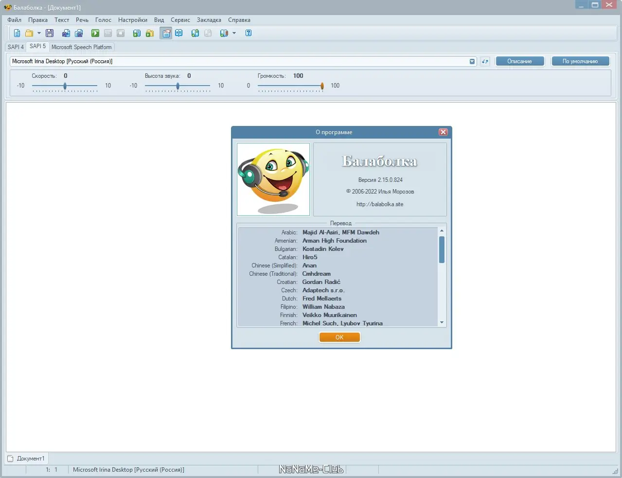 Balabolka — программа для чтения текста вслух с поддержкой различных форматов документов и аудиовыхода. Она использует установленные на компьютере голосовые движки и позволяет конвертировать текст в речь с возможностью сохранения в аудиофайлы. Подходит для озвучки книг, подготовки подкастов, изучения языков и удобного восприятия текстовой информации.