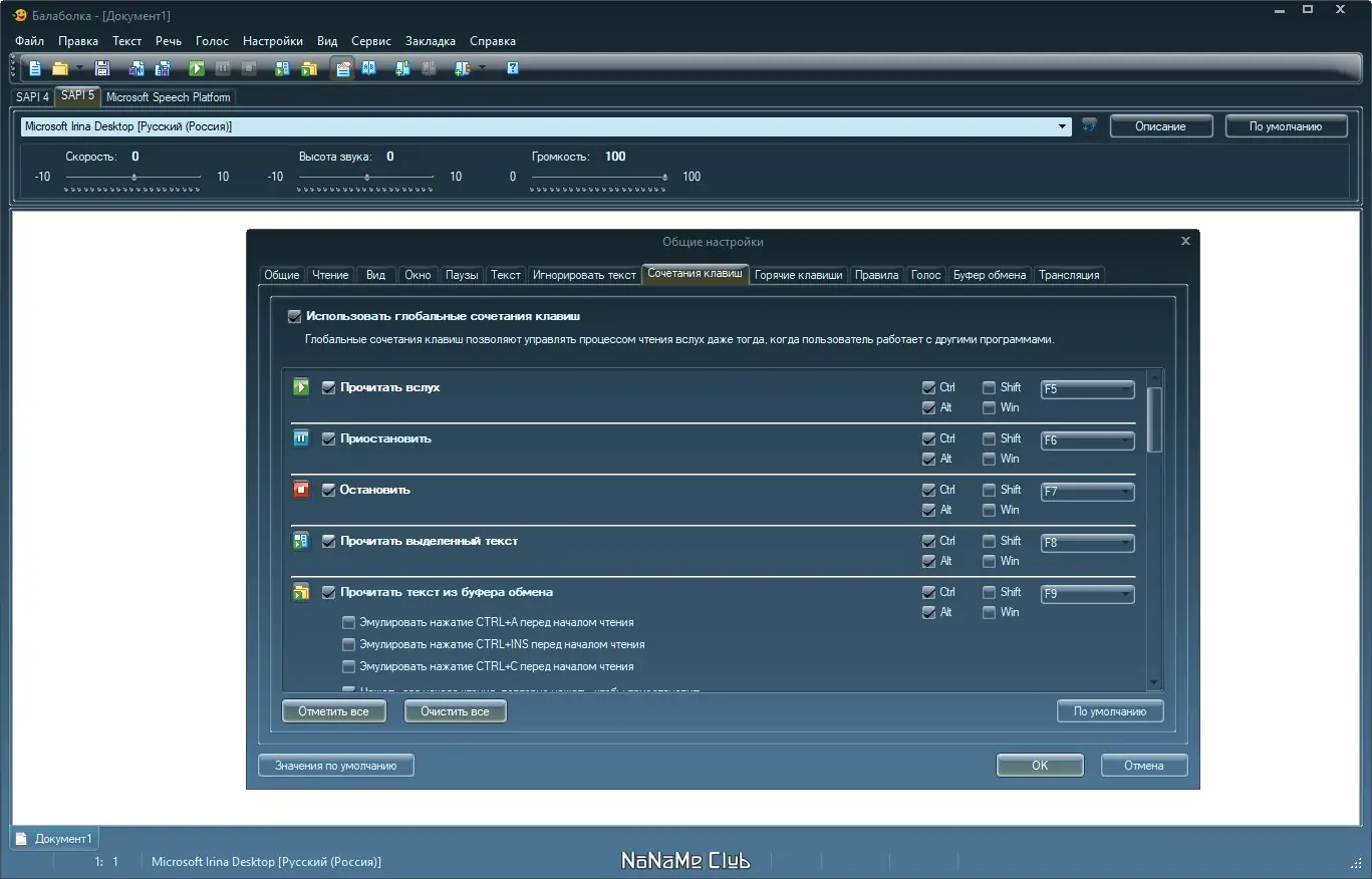 - Гибкие настройки голоса: регулировка темпа, тона и громкости.