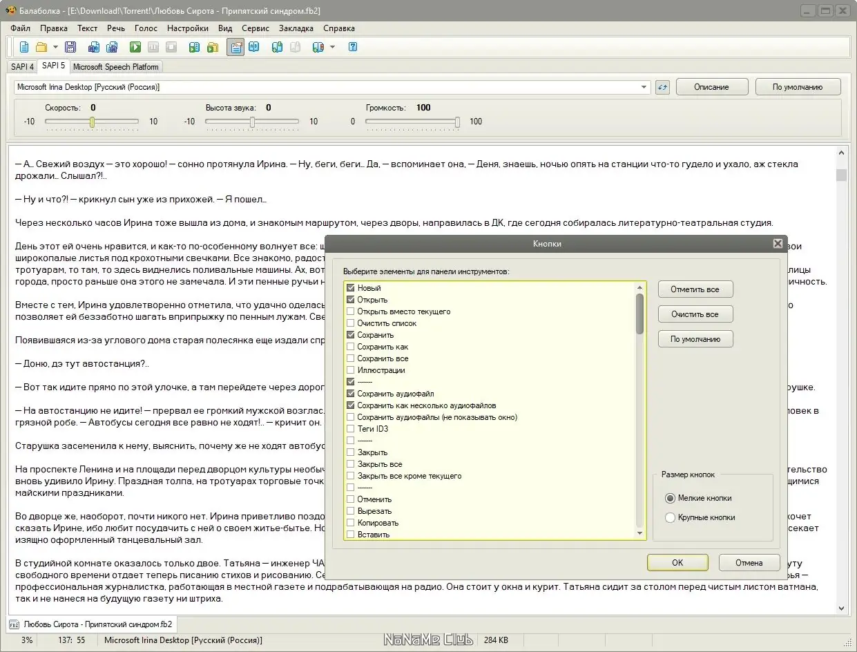 - Поддержка озвучки текста из буфера обмена и различных форматов файлов, включая редкие, такие как DjVu и CHM.