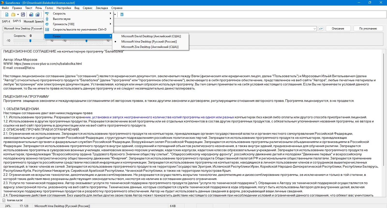Описание Balabolka