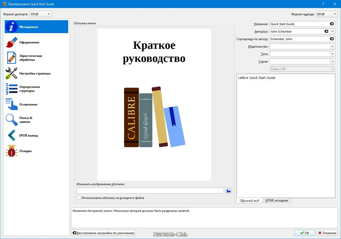 - Поддержка популярных форматов электронных книг на входе и выходе