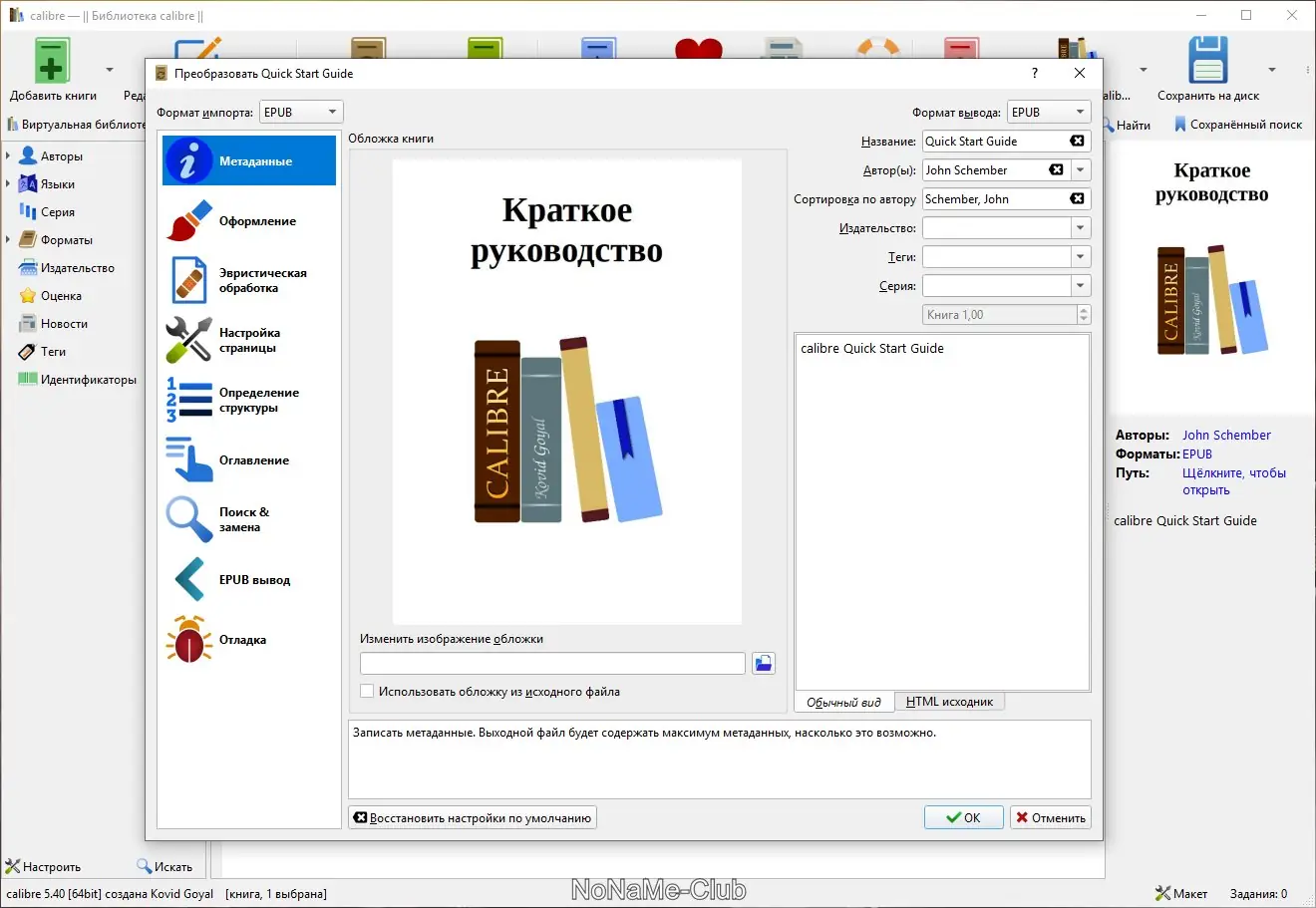 Использование Calibre начинается с добавления книг в библиотеку, что можно сделать перетаскиванием файлов или через меню импорта. После добавления программа автоматически анализирует файл, извлекает название, автора, серию и другие метаданные, а при необходимости — загружает обложку. Далее пользователь может редактировать информацию, добавлять теги, комментарии или оценки, а также группировать книги по сериям.