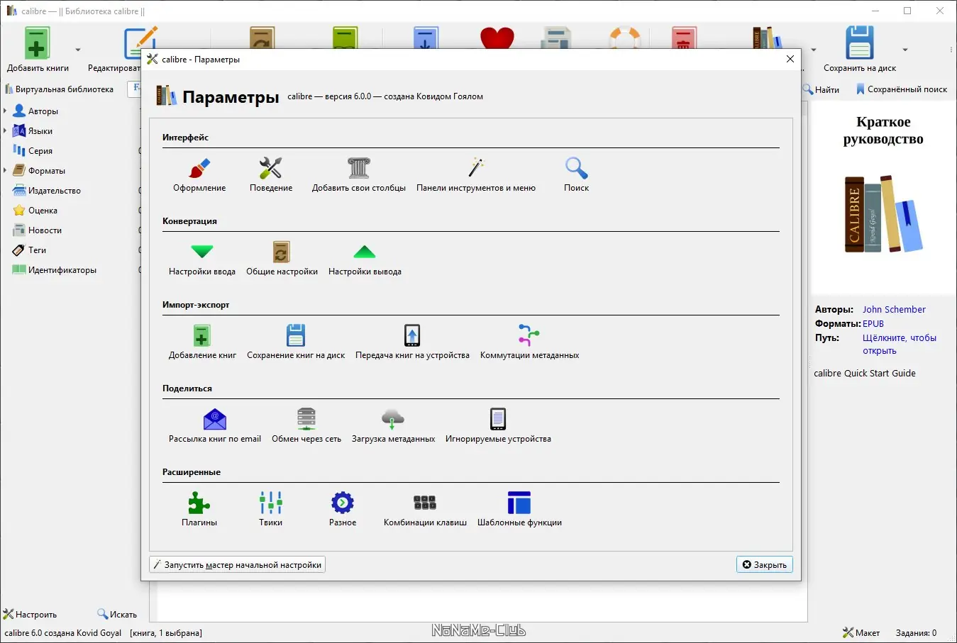 - Встроенный веб-сервер даёт возможность удалённого доступа к библиотеке через браузер, что особенно полезно при работе с несколькими устройствами или при необходимости получить доступ к книгам из любой точки мира.