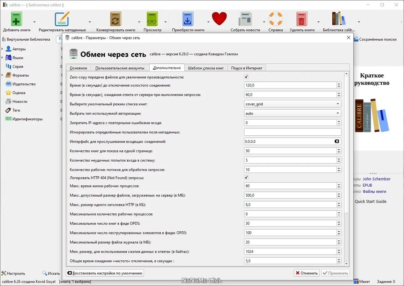 - Встроенный веб-сервер для удалённого доступа к библиотеке с любого устройства