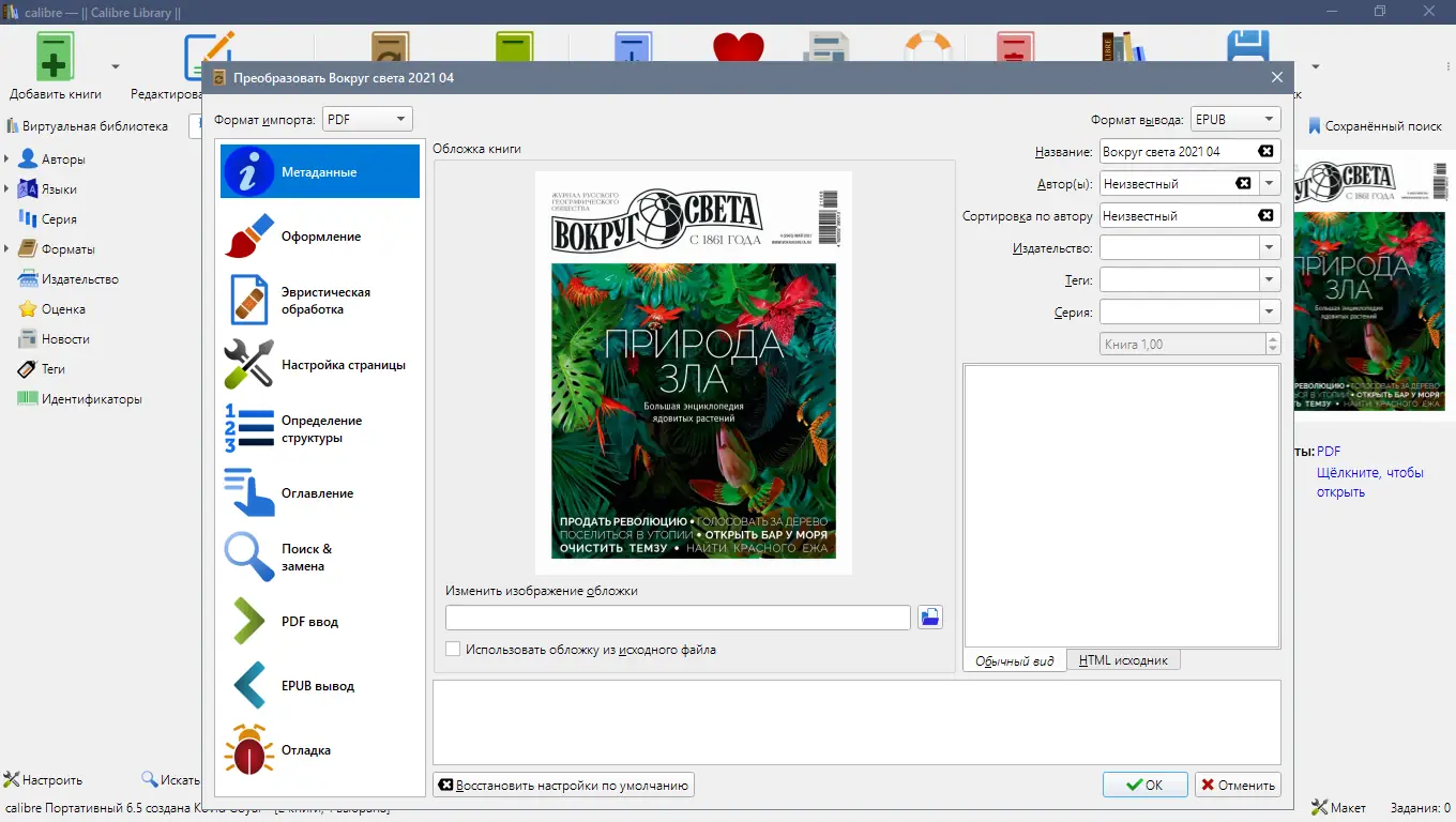 - Поддержка широкого спектра форматов электронных книг на входе и выходе, включая EPUB, MOBI, PDF, FB2 и другие.
