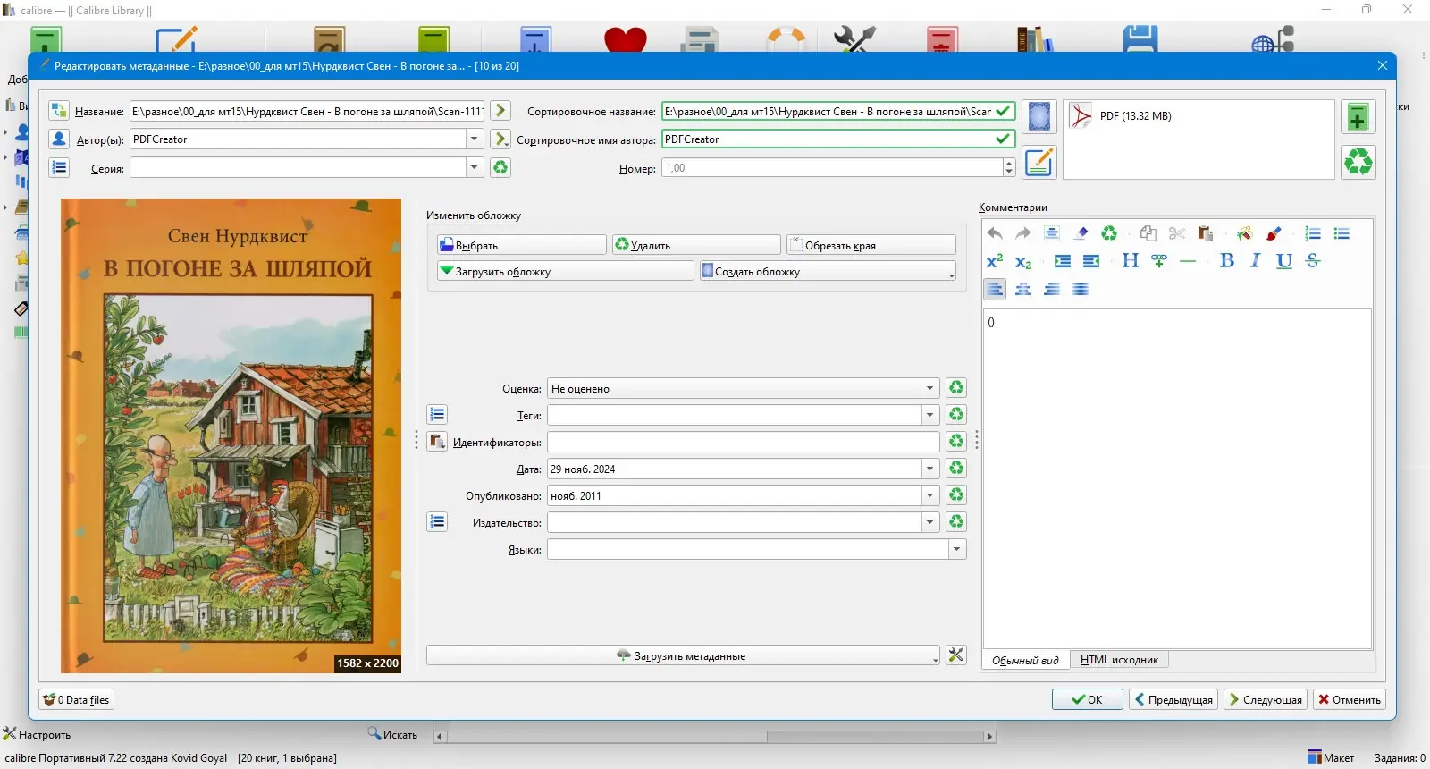 - Автоматическое извлечение и обновление метаданных, включая поиск по ISBN и авторскому имени.