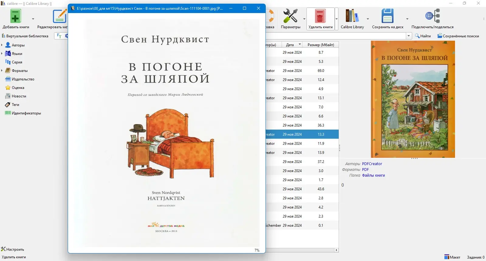 - Синхронизация с ридерами происходит автоматически: Calibre определяет устройство, выбирает подходящий формат и передаёт все метаданные, включая обложки и информацию о серии.