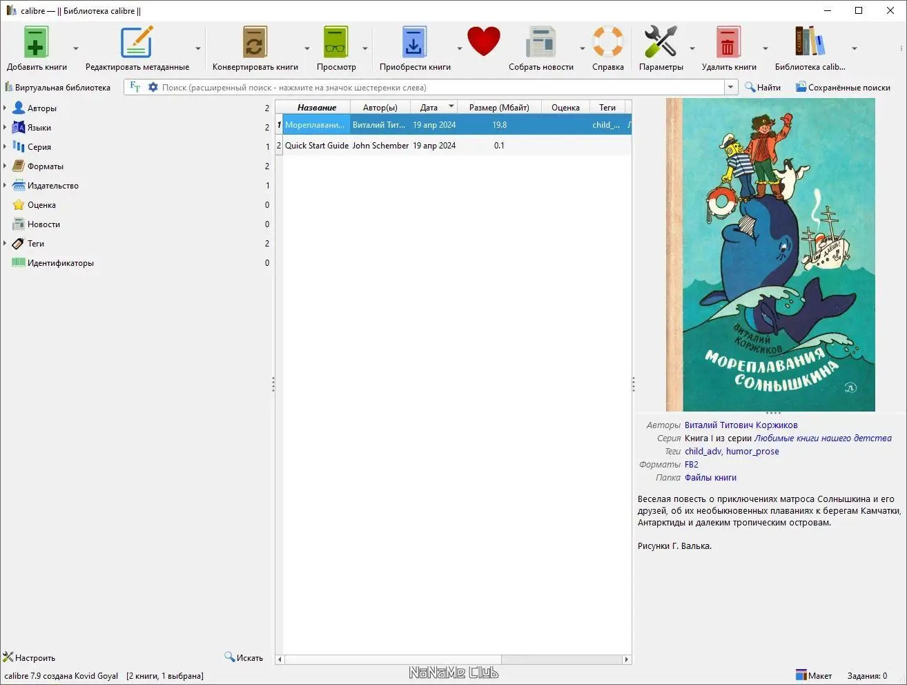 После установки достаточно добавить файлы книг в библиотеку — программа автоматически распознает метаданные и сгруппирует разные версии одной книги. Через панель инструментов можно конвертировать форматы, редактировать информацию, сортировать по полям и передавать на устройство. Встроенный веб-сервер позволяет получать доступ к коллекции с любого устройства в сети, а функция подписки на новости превращает статьи в удобные для чтения книги.
