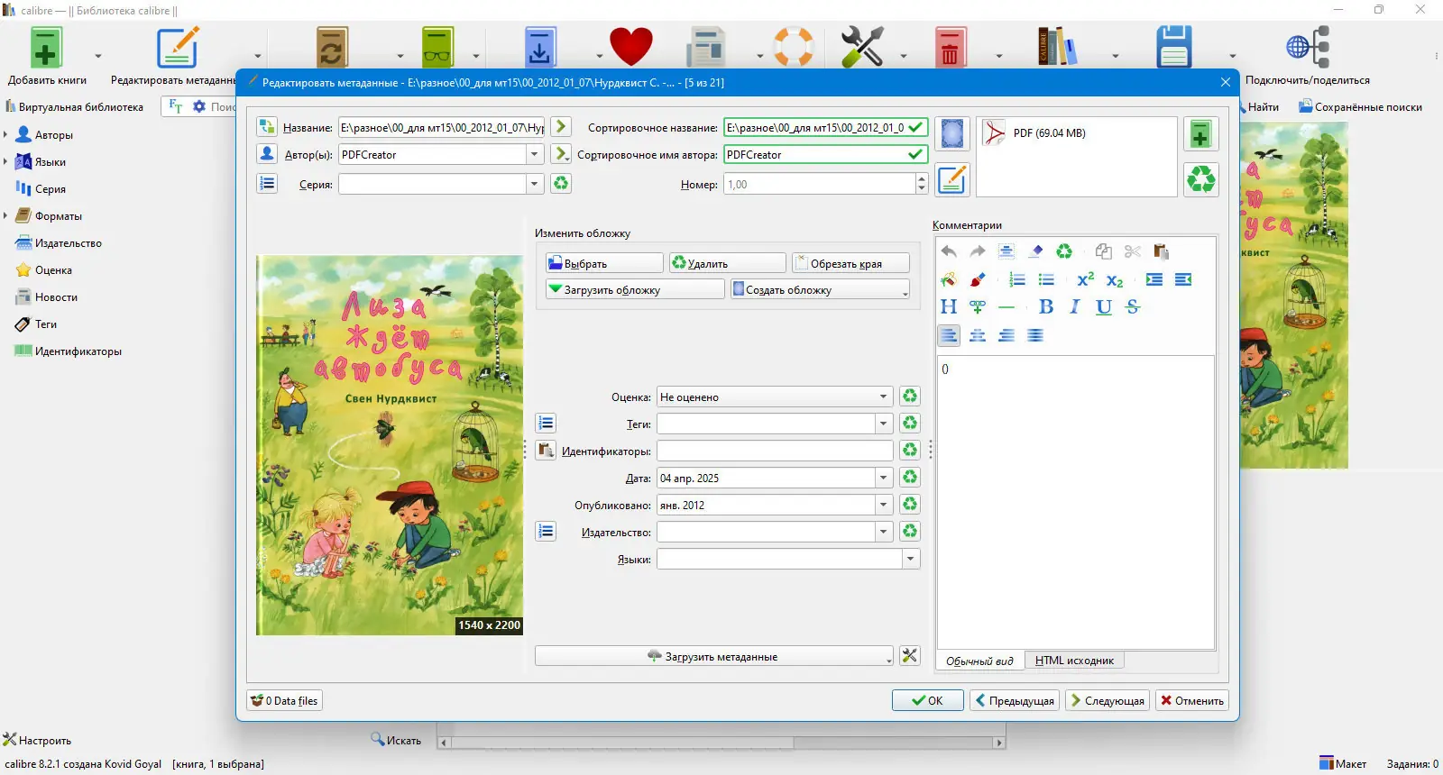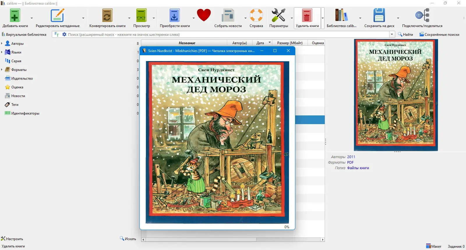 Calibre представляет собой универсальную систему управления цифровой библиотекой, сочетающую в себе функции каталогизатора, конвертера, читалки и синхронизатора. Программа автоматически структурирует добавленные файлы, распознаёт метаданные и подтягивает обложки из интернета, что упрощает навигацию по коллекции. Каждая книга отображается как единый объект, даже если она существует в нескольких форматах, что устраняет дублирование и улучшает восприятие библиотеки.