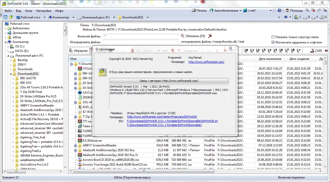 DirPrintOK доступна для загрузки в портативной версии, совместимой с различными версиями Windows. Программа не содержит вредоносного кода и не требует прав администратора для запуска. Обновления регулярно выпускаются разработчиком, включая улучшения языковых файлов и поддержку архивов Zip и Cab. Версия 5.01 добавила возможность открытия архивов как папок для печати их содержимого. Поддержка MS Explorer и консольных режимов делает инструмент универсальным для разных сценариев использования.