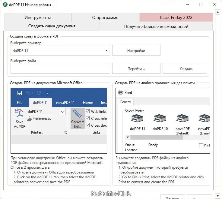 doPDF — это утилита для преобразования документов в формат PDF, работающая по принципу виртуального принтера. Программа поддерживает широкий спектр исходных форматов, включая файлы Microsoft Word, Excel, PowerPoint, электронные письма и веб-страницы. После установки в системе появляется новый принтер, через который осуществляется конвертация любых документов в PDF с возможностью настройки качества и параметров вывода.