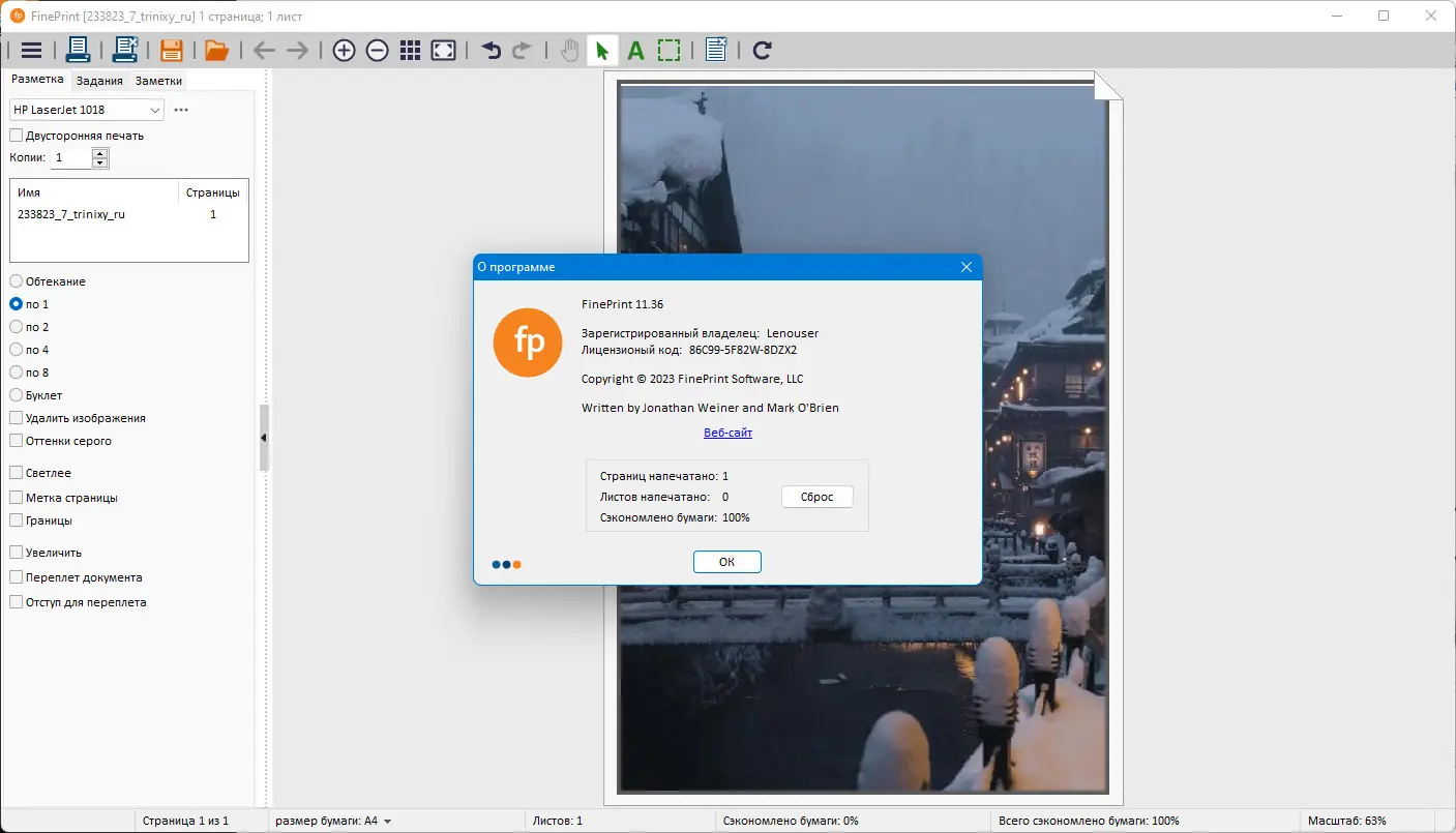 FinePrint — это универсальный виртуальный драйвер печати, расширяющий функциональность любого принтера. Программа позволяет оптимизировать процесс печати, сэкономить ресурсы и время за счёт предварительного просмотра, настройки макета и управления содержимым страниц. С её помощью легко печатать несколько страниц на одном листе, создавать буклеты, добавлять водяные знаки и фирменные бланки, а также управлять чернилами и бумагой.