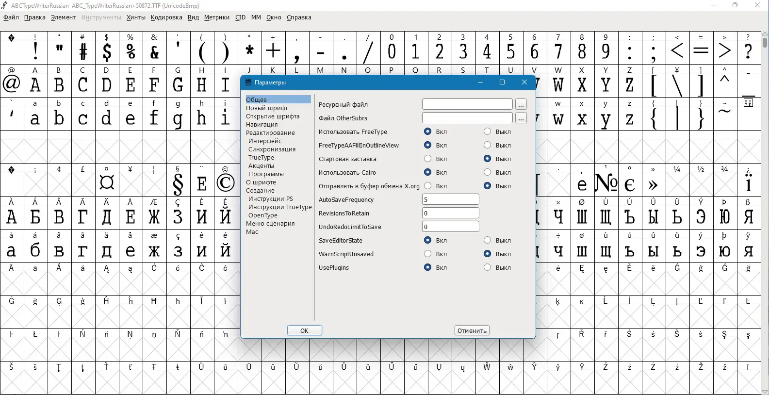 Описание FontForge