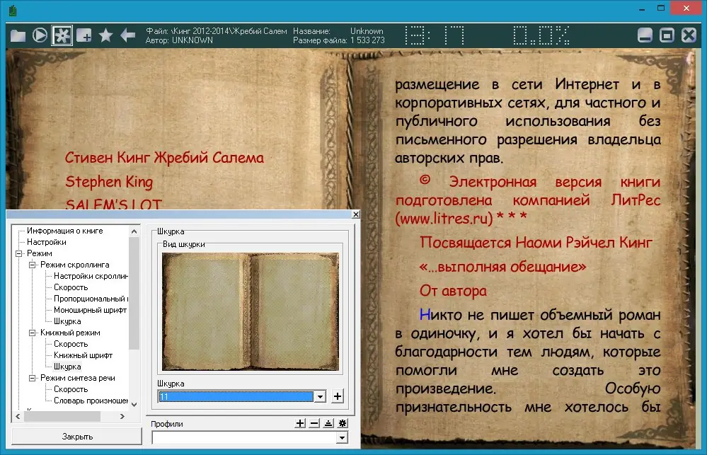 ICE Book Reader Professional — это универсальное приложение для чтения, управления и конвертации электронных книг различных форматов. Программа поддерживает работу с .LIT, .CHM, FB2, TXT, DOC, PDB и другими форматами, не требуя компонентов Microsoft Reader или Microsoft HELP. Она также функционирует как телепромптер и инструмент для аудиоэкспорта текста, обеспечивая широкие возможности для работы с цифровыми текстами.