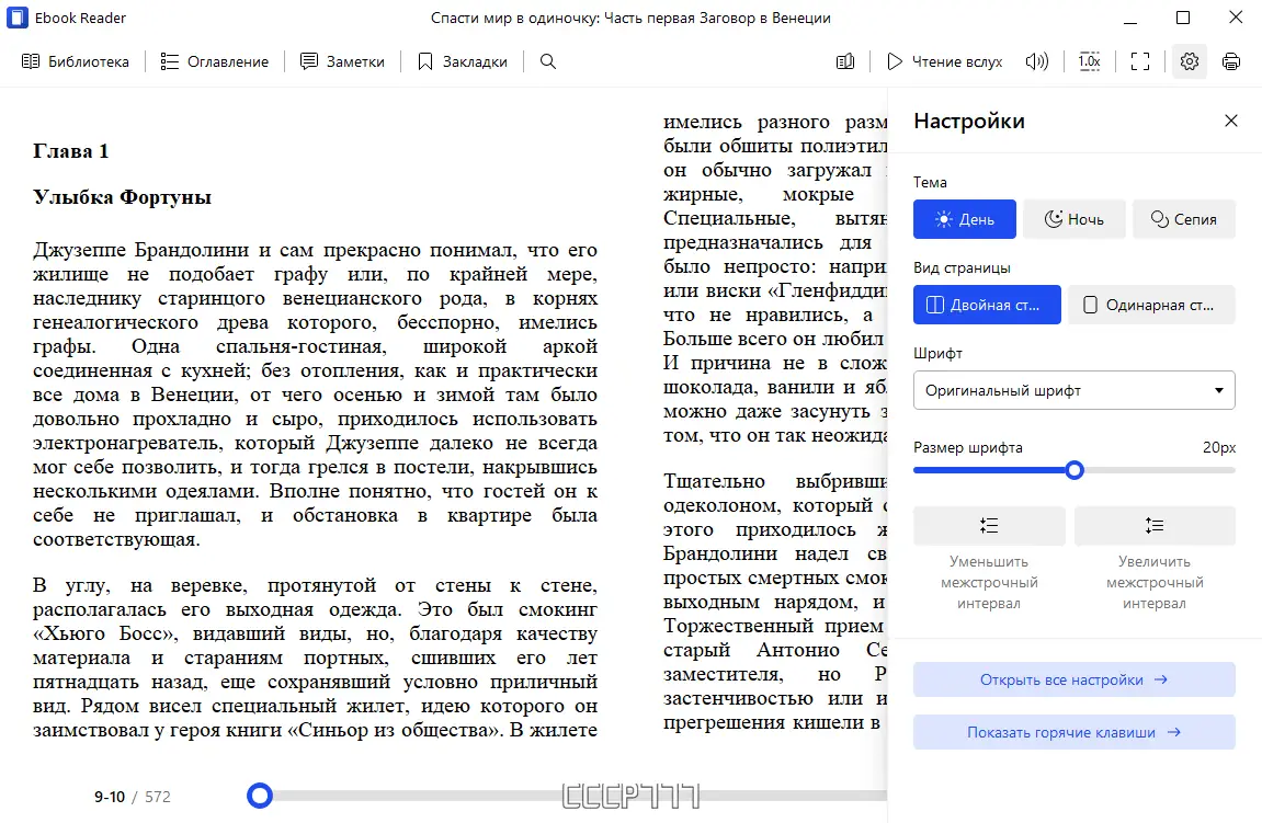 - Поддержка форматов ePub, MOBI, FB2, CBR и других