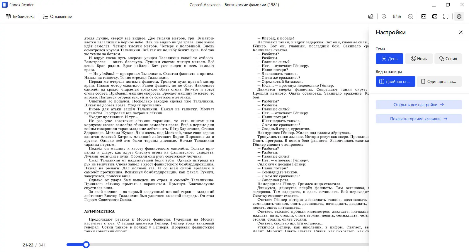 - Возможность копировать фрагменты, делать заметки и устанавливать закладки