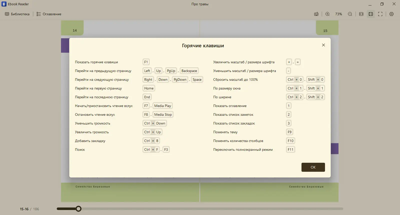 Программа адаптируется под предпочтения пользователя, позволяя настраивать шрифты, межстрочный интервал и фон страницы.