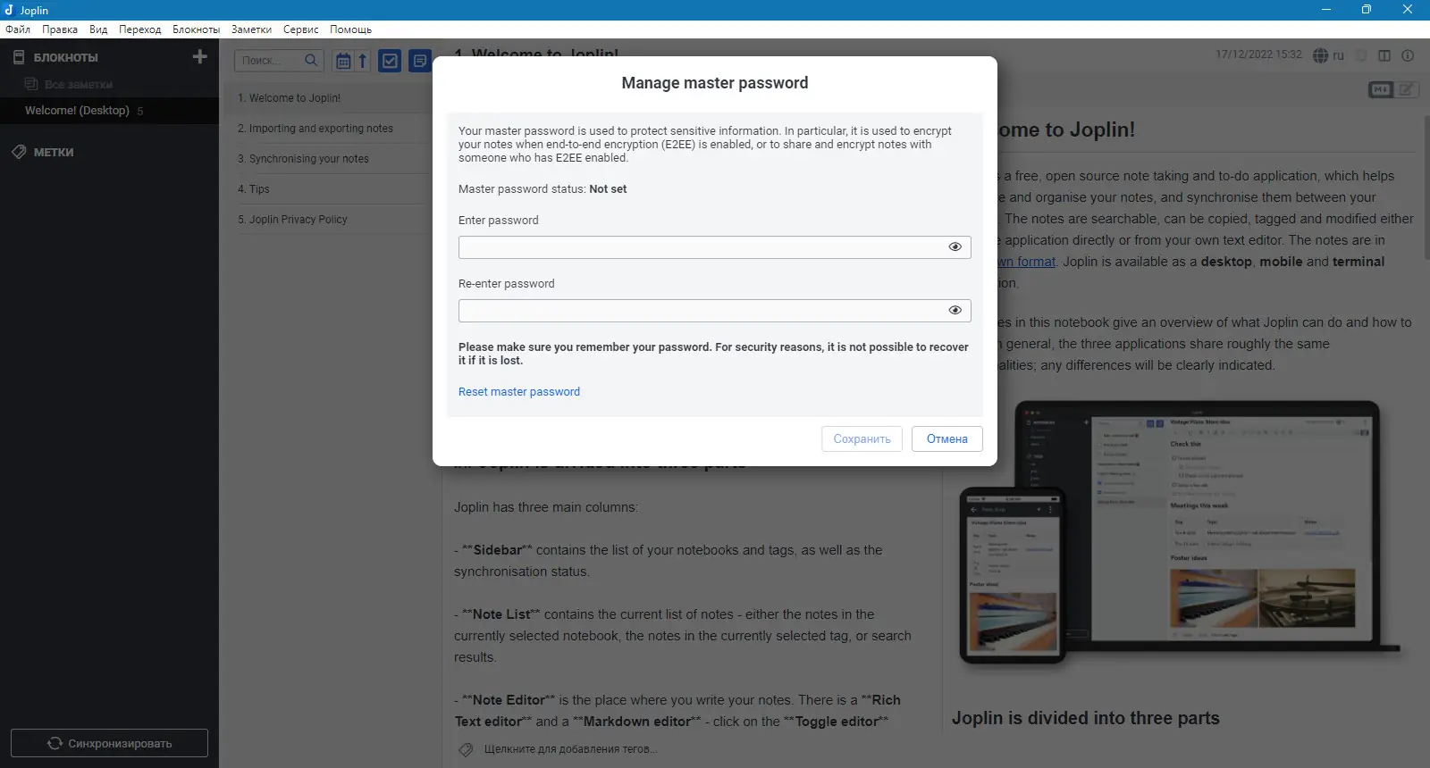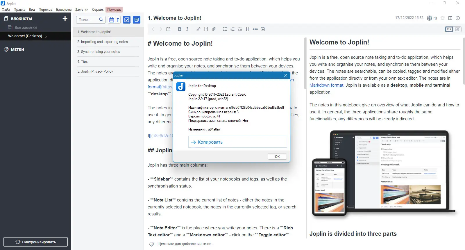 Как пользоваться Joplin