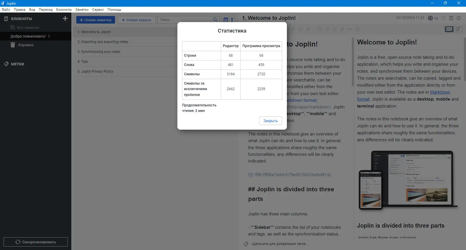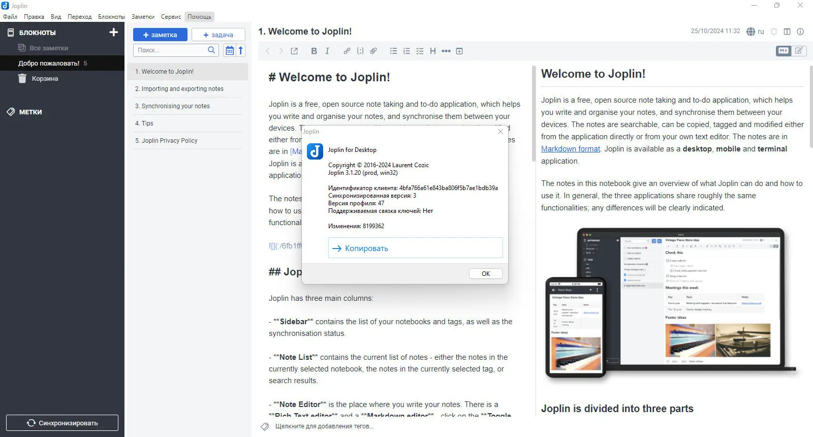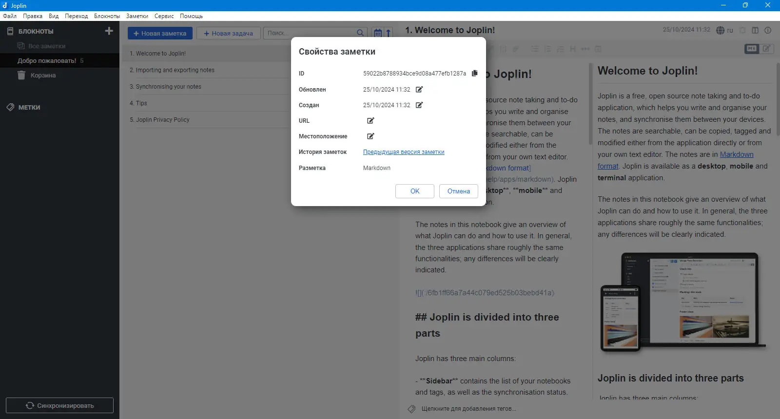 Как пользоваться Joplin