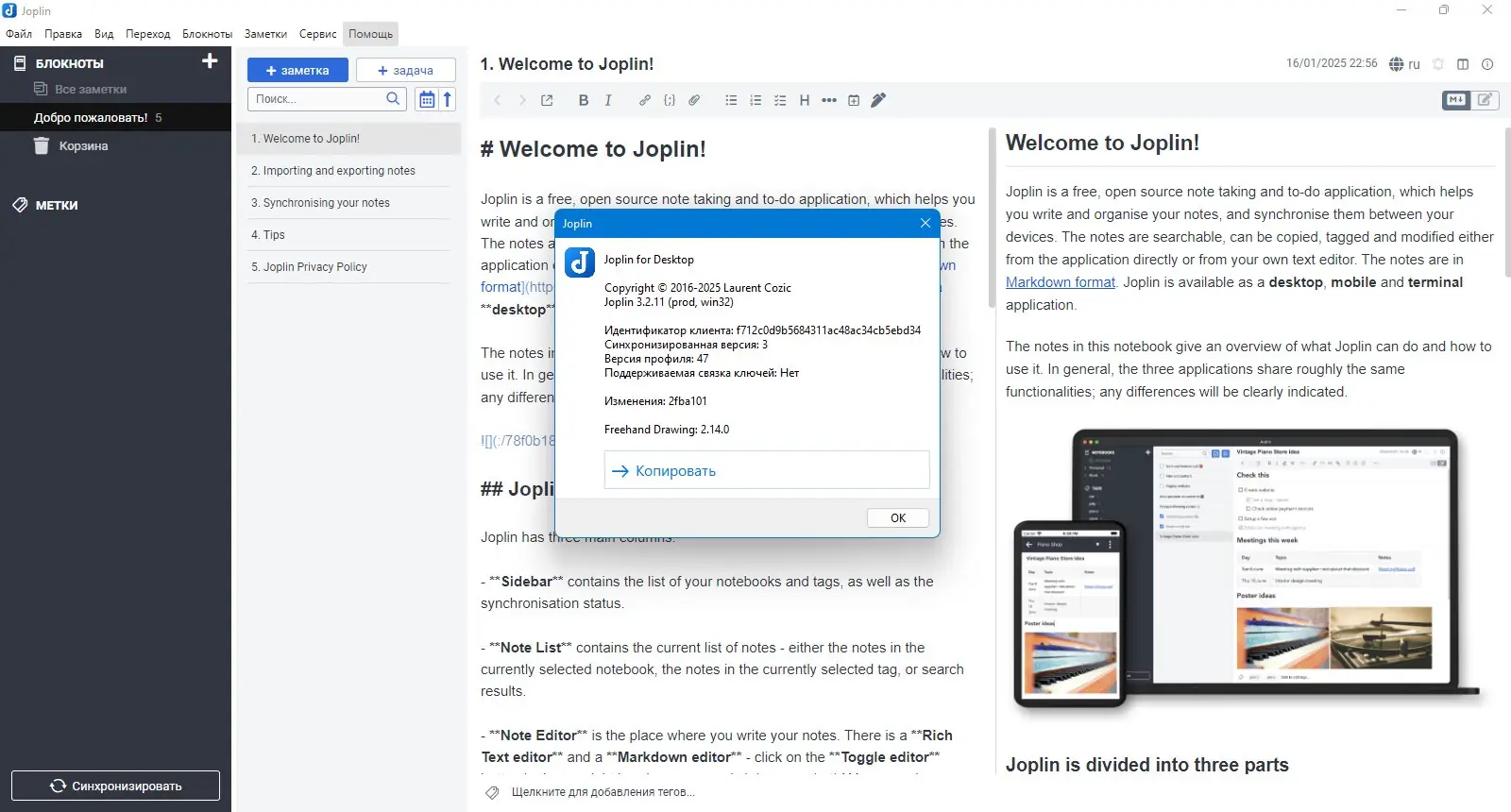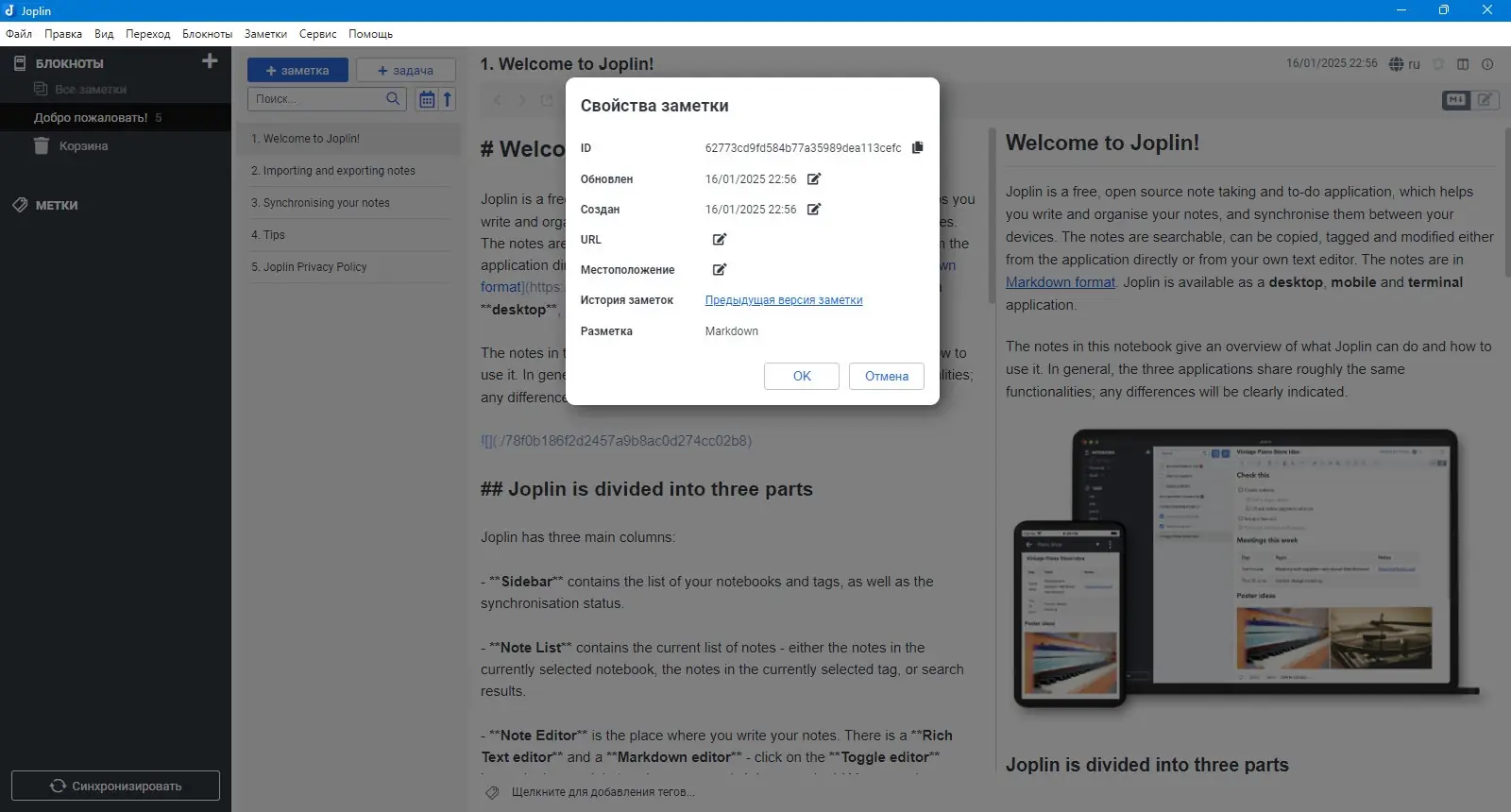 Как пользоваться Joplin