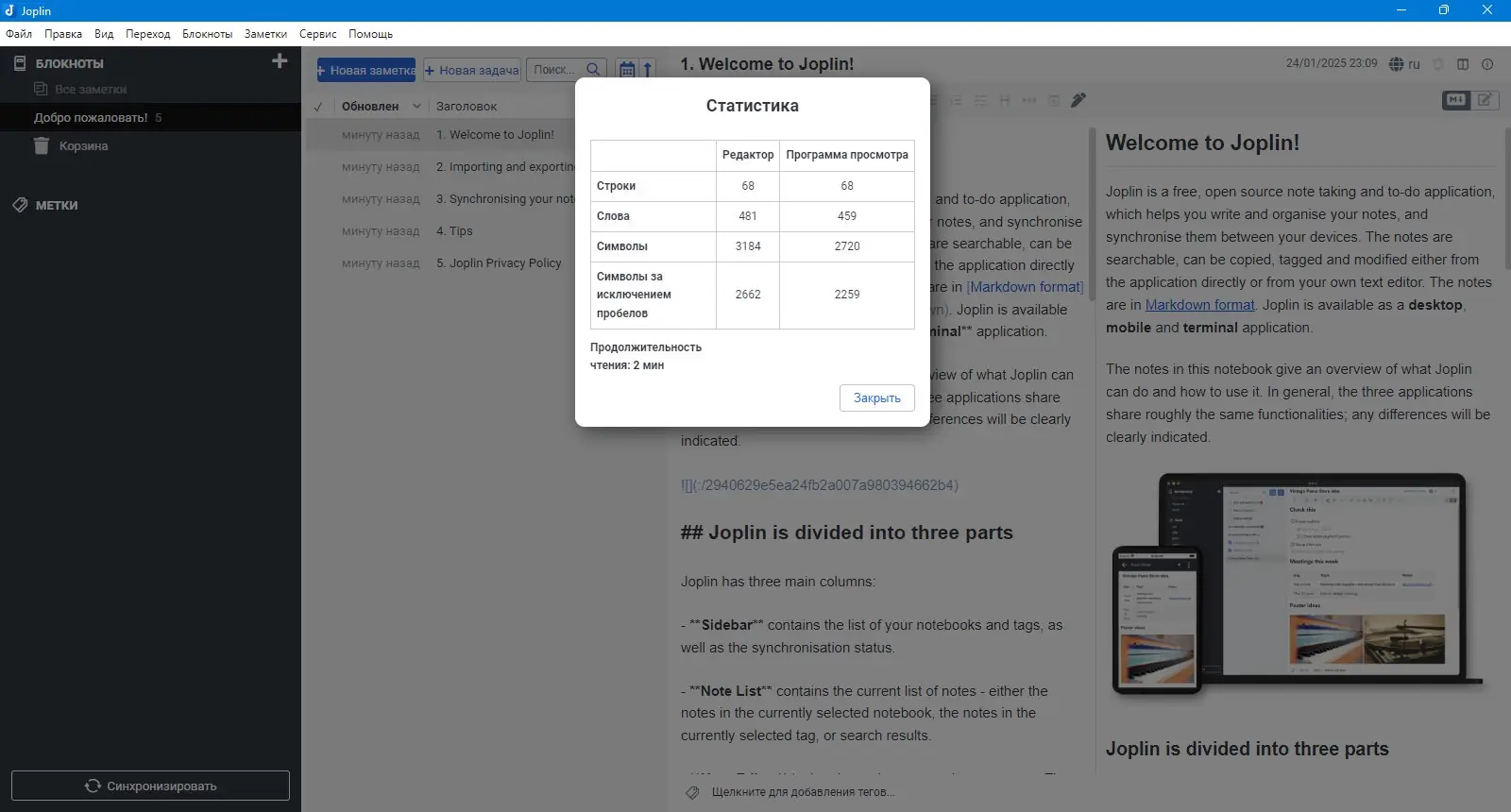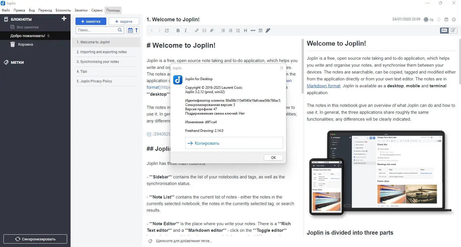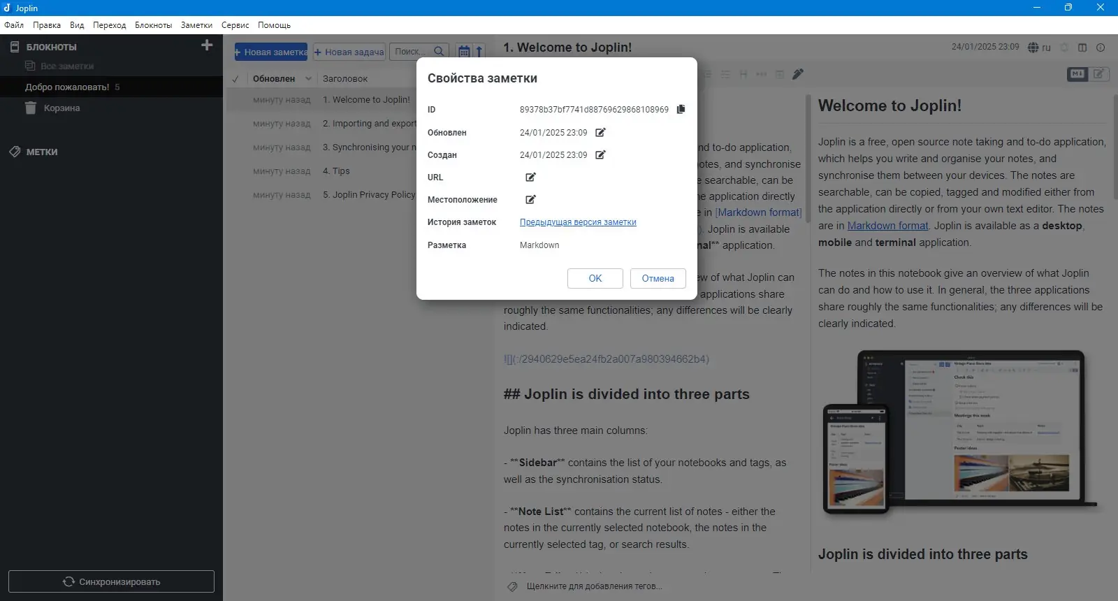 Как пользоваться Joplin