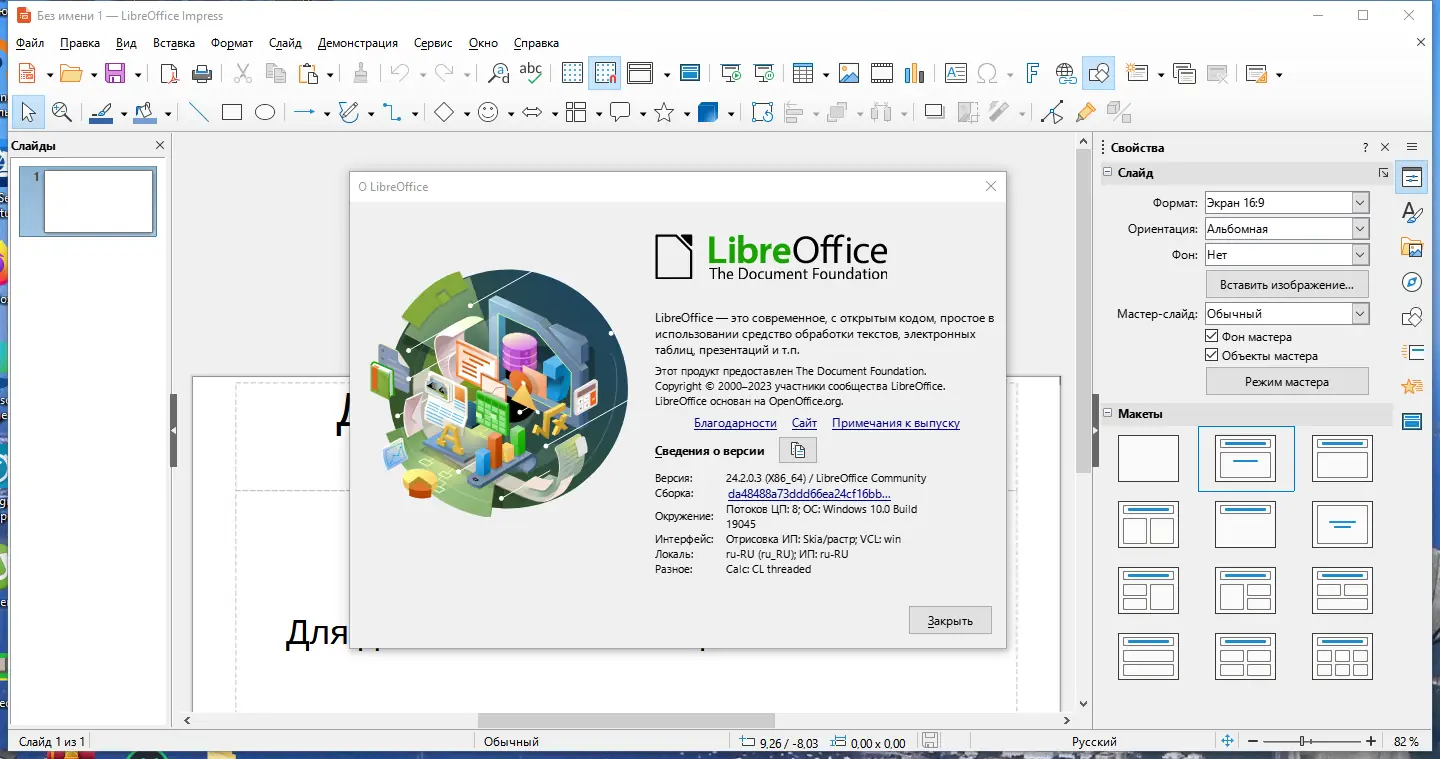LibreOffice представляет собой полнофункциональный офисный пакет, созданный на основе исходного кода OpenOffice.org, но с активным развитием и постоянным улучшением. Он предназначен для выполнения широкого спектра задач, связанных с документооборотом, и используется как частными лицами, так и организациями. Благодаря открытой лицензии, программу можно свободно модифицировать, распространять и адаптировать под конкретные нужды.