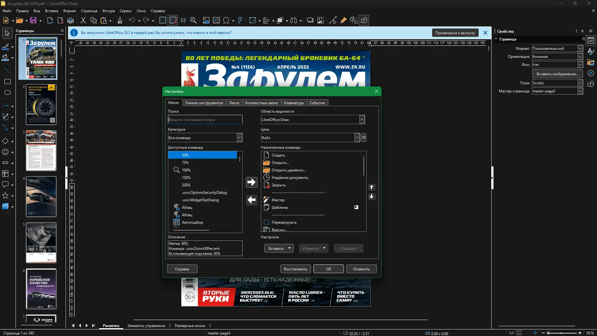 При работе с документами можно использовать навигатор для быстрого перемещения между страницами, а также стилист для единообразного оформления. Функция экспорта в PDF доступна из всех приложений, кроме base, и позволяет сохранять файлы с настройками безопасности. Для вставки графики используется галерея, поддерживающая форматы, включая svg и drawing.