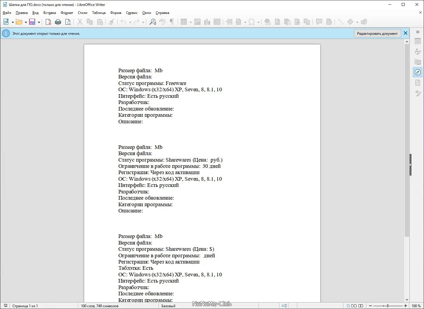 Описание LibreOffice